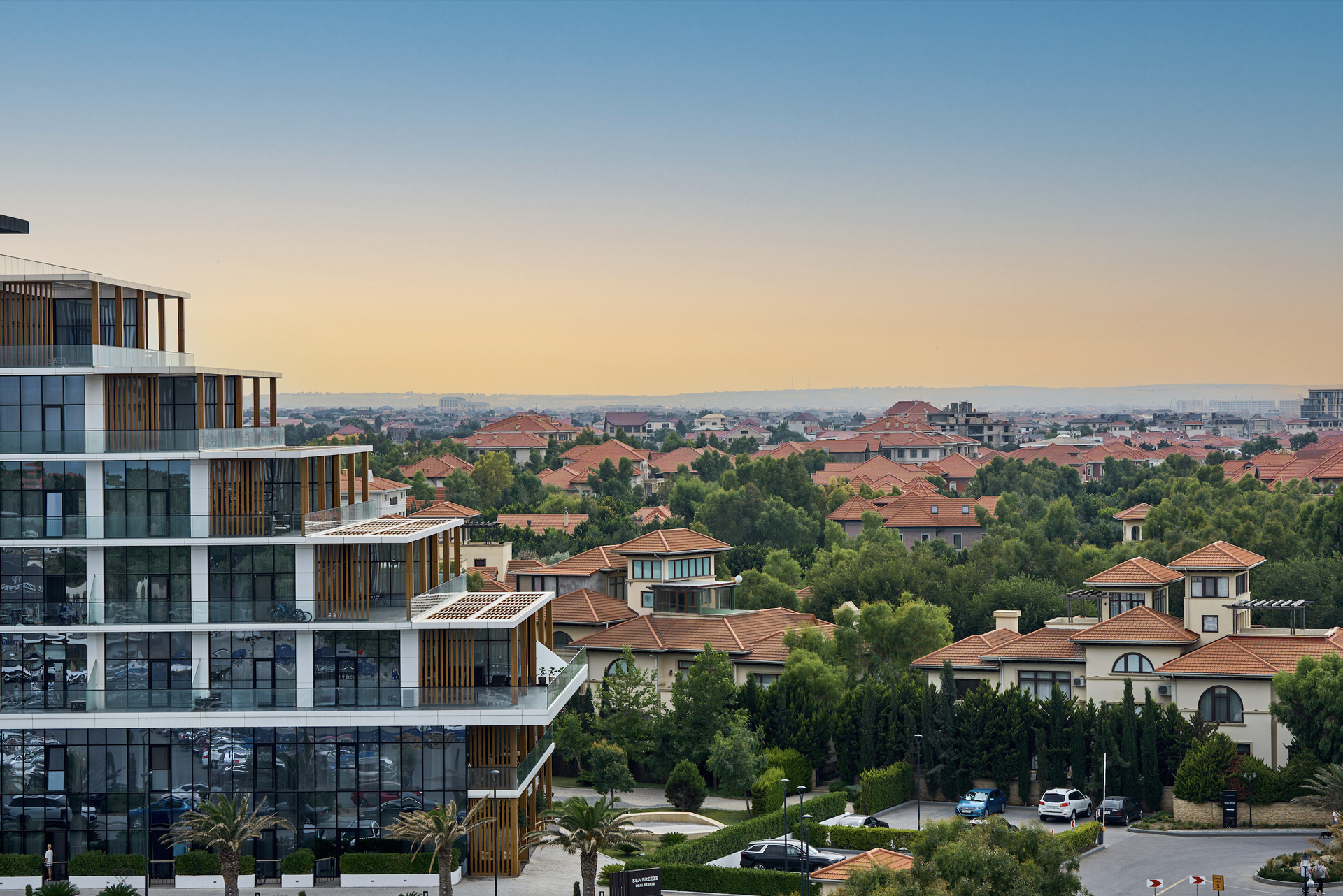 Şəhər ritmindən bir qədər uzaqda, lakin hələ də kurort çərçivəsində yerləşən "JA Lake View Hotel" daha aktiv ton müəyyən edir. Qolf meydançası və göllərlə əhatə olunmuş bu müasir layfstayl-otel zəngin infrastruktur təklif edir: **"shooting club"**dan (atıcılıq klubu) tutmuş qastronomik konsepsiyalara qədər, burada hərəkət həzzin bir hissəsinə çevrilir.