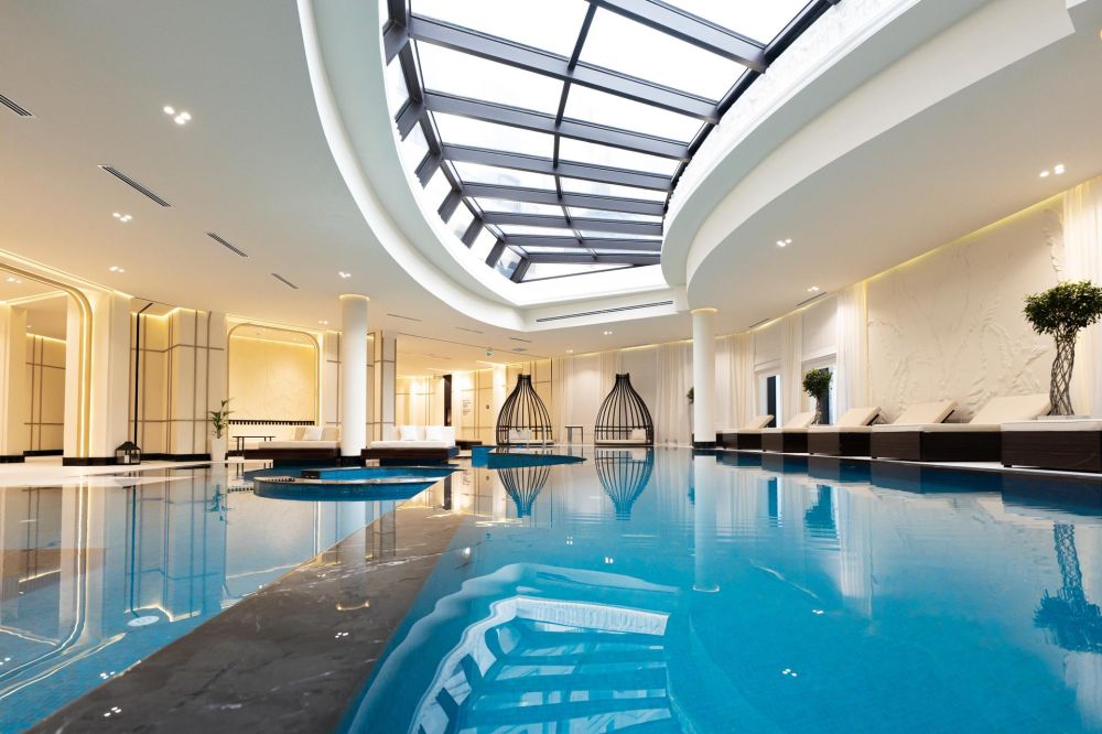 Şəffaf günbəz altında yerləşən hovuzda 14 su attraksionu (əks axın, divar və dib masajları, hidrolojaklar) ilə ideal istirahət məkanı yaradılıb. Su təmizlənməsinin çoxpilləli sistemi onun yüksək keyfiyyətini təmin edir.